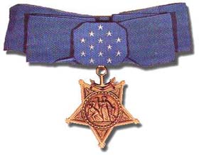 Cross, Navy Distinguished Service Medal Silver Star, Defense Superior Service Medal, Navy & Marine Corps Medal Bronze Star, Purple Heart, Defense Meritorious Service Medal Navy & Marine Corps Achievement Medal, Presidential Unit Citation, Navy "E", POW Medal, Marine Corps Good Conduct Medal, Navy Good Conduct Medal, Fleet Marine Force Service, Marine Corps Expeditionary Medal, Navy Expeditionary Medal, National Defense Service Medal, Navy/Marine Corps Overseas Service, Philippines Republic Presidential Unit Citation |